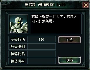 據說,乾坤石陣內自有一方天地,精英石陣守衛(雷石陣、山石陣、石陣之眼)和軍團(乾坤石陣)均可掉落110級六道系列橙裝。